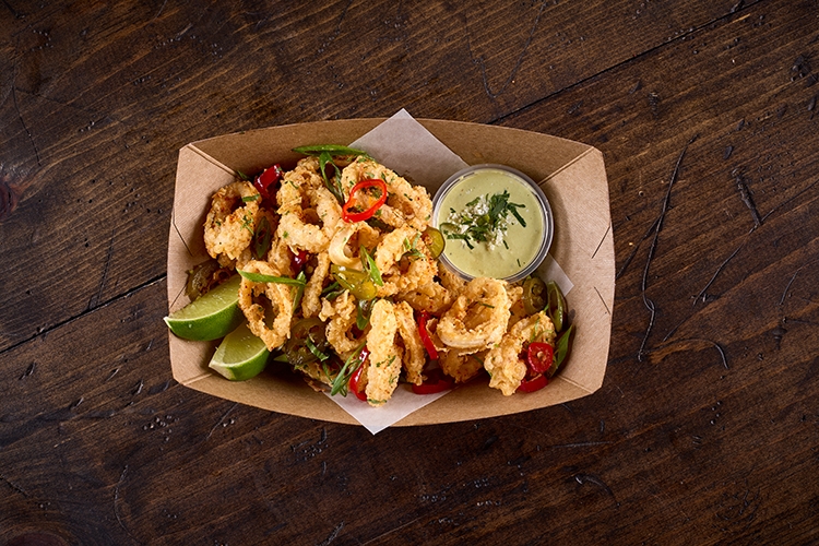 crispy tajin spiced calamari, candied chilis, poblano ranch