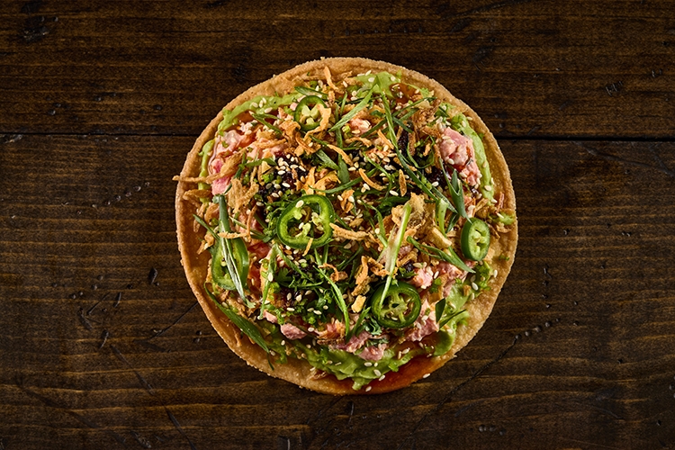 Tuna*, Charred Soy Jalapeno Salsa Macha, Togarashi Aioli, Sesame Avocado, Green Onion, Cilantro, Serrano Chile, Crispy Onion.