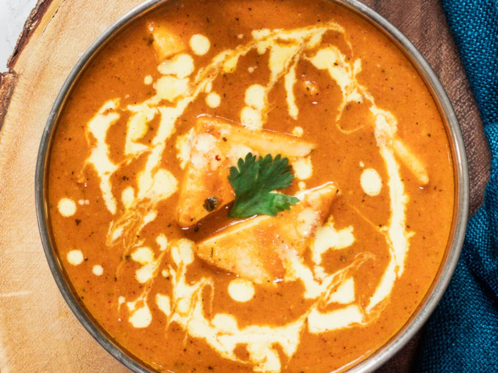 Homemade cheese cooked in thick gravy of cream, tomatoes, and indian spices.